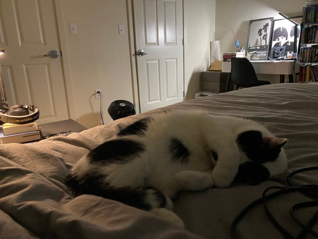 This week's entry will be brief. I've been struggling off and on with the impetus to write. It comes and goes, and right now I'm forcing myself to do it. I find it darkly funny that the year I finally decide to start a proper music blog is the year career concert-goers such as myself get the rug ripped out from under us. It's a dark cloud over my mood that's tough to shake, and when I'm not working remote, the nesting urge takes over: I am compelled to cook, clean, and sleep. Ernie is like a pig in shit: his two favorite people are around constantly to shower him with affection and snacks. Emphasis on the snacks.