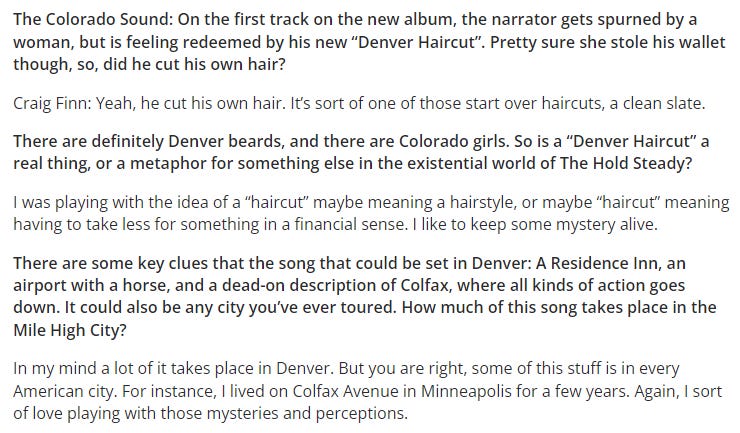 “Taking a haircut.” “Starting over with a clean slate.” Hold Steady albums are all people, places, and things, winking identifications and pins on a road map, little bags of hard evidence. But they’re idioms and imagery, too. The pieces are littered all over the floor, waiting for you to put them together, connect the dots, construct a narrative.